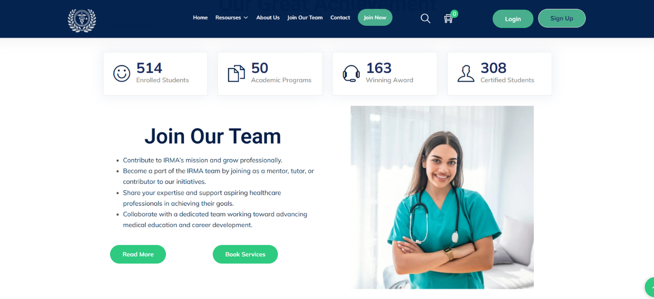 IMG Residency Match Academy is a fully functional WordPress LMS website built to support medical students preparing for residency match exams. The platform allows instructors to conduct live online classes and upload recorded lectures for future access. Students can log in securely, enroll in courses, and learn at their own pace through a structured learning management system. The website is optimized for performance, mobile responsiveness, and user experience, ensuring smooth navigation across devices. With organized course modules, lecture recordings, and easy content management, this project showcases a scalable and professional e-learning solution tailored for medical education. Special attention was given to user experience, performance optimization, and scalability, making the website reliable for a growing number of users. The LMS structure simplifies content management while maintaining data security and accessibility. Overall, IMG Residency Match Academy serves as a powerful e-learning solution that bridges the gap between medical education and technology, helping aspiring doctors prepare effectively with flexible, accessible, and professionally delivered online learning resources.