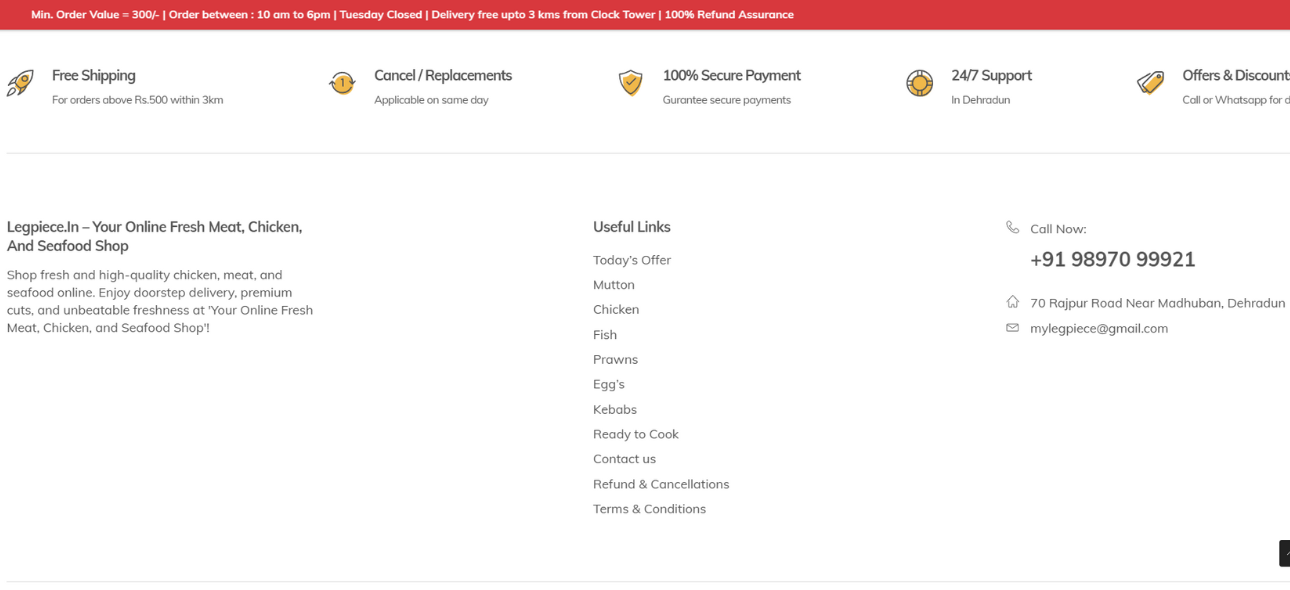 Legpiece.in is a WordPress and WooCommerce–based e-commerce website developed for selling fresh and high-quality meat products online.